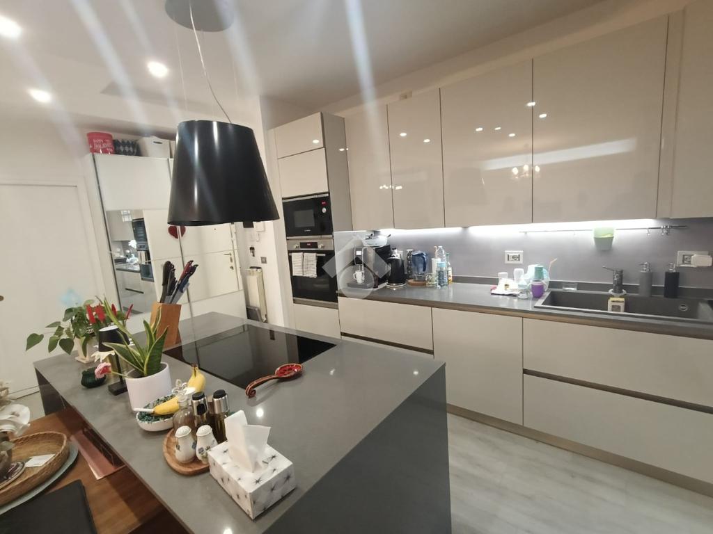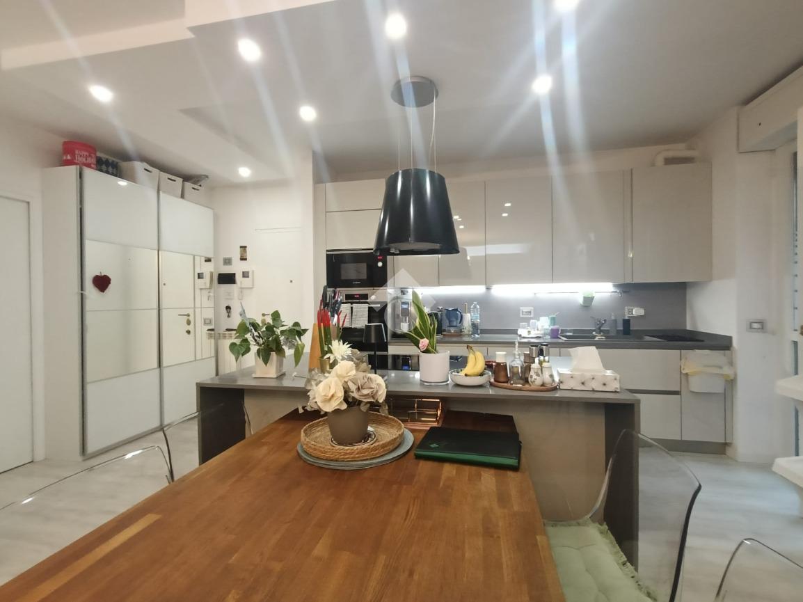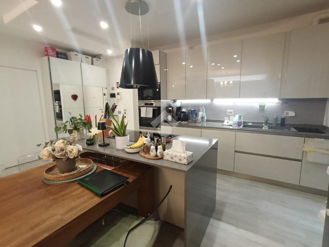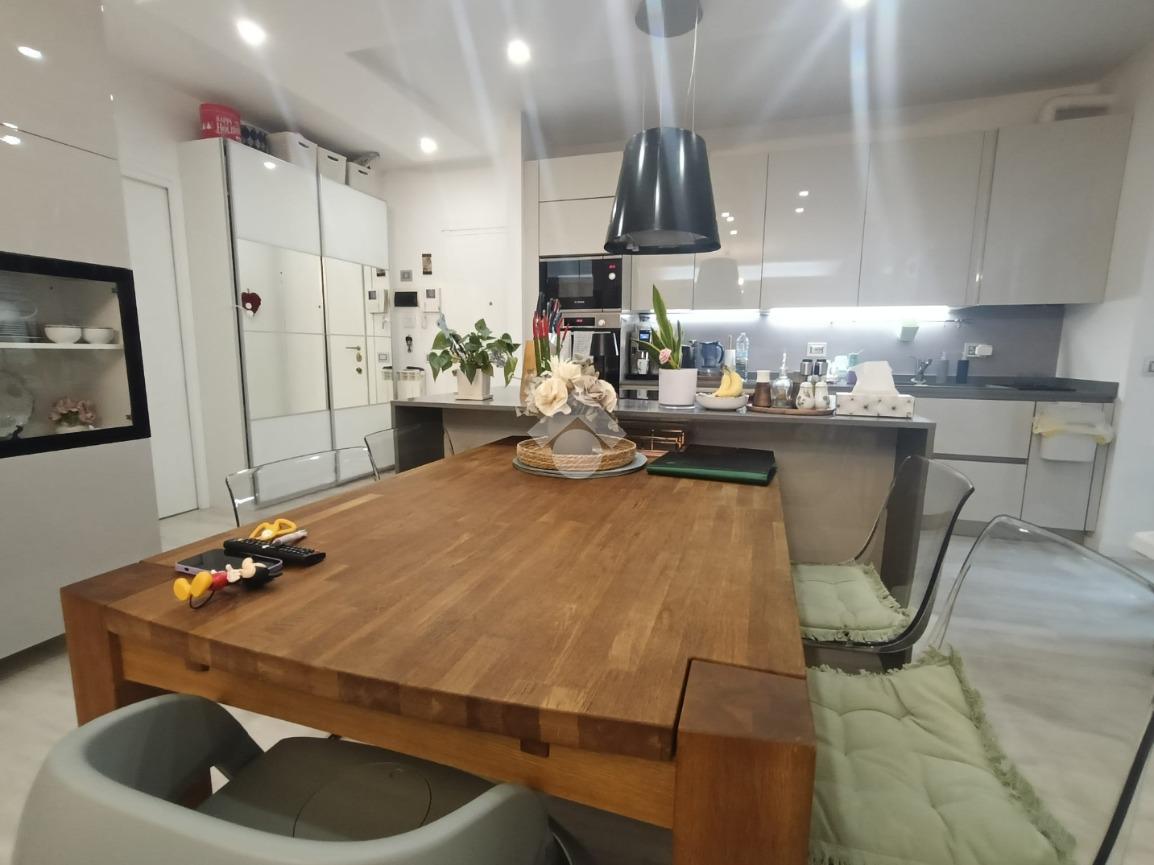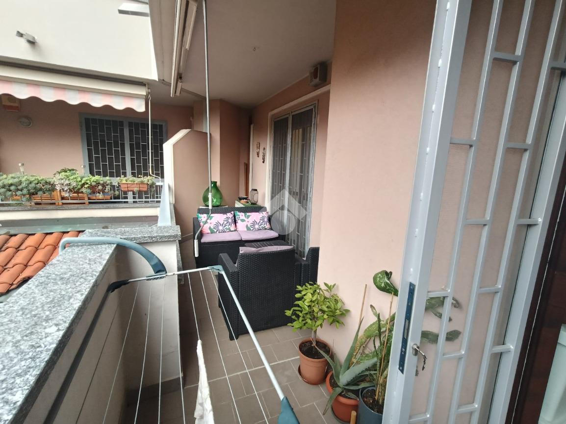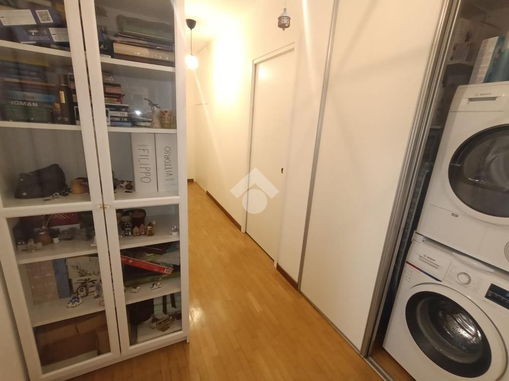Ingresso in disimpegno ampio con cucina a vista, soggiorno con accesso ad un ampio balcone, disimpegno corridoio con armadio a muro, ripostiglio con lavatrice e asciugatrice, camera da letto con accesso al balcone, seconda camera con balcone, bagno ristrutturato con vasca, camera matrimoniale ampia , bagno con piatto doccia doppio a filo pavimento.